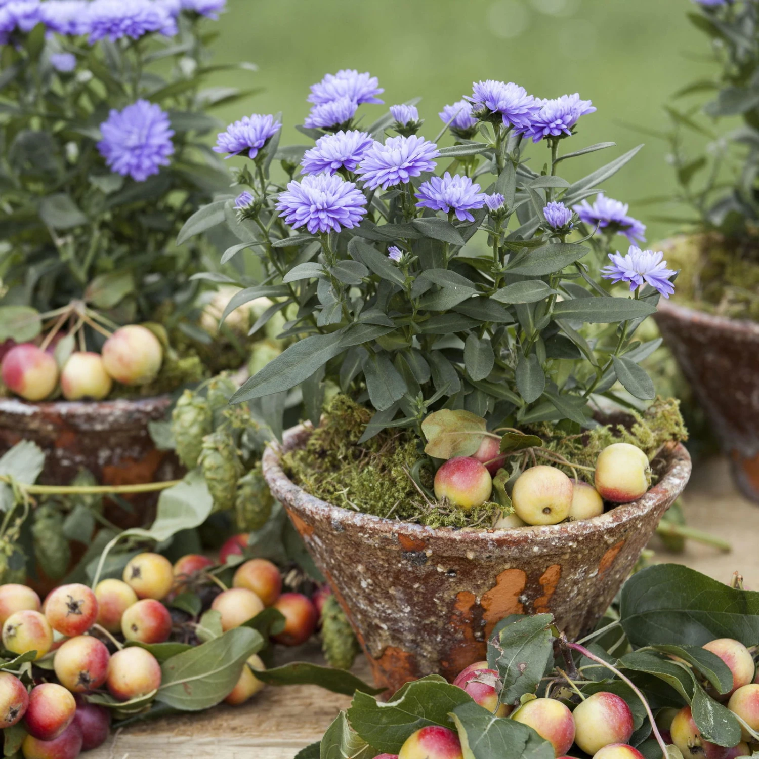 Setzen Sie mit der Glattblatt-Aster farbintensive Akzente, die im Sommer und Herbst ein ganz besonderes Farbenspiel bieten. Diese Pflanzen wurden in der Gärtnerei so kultiviert, dass sie dieses Jahr mit ihrem kompakten, kurzen Wuchs auch für herrliche Arrangements in Balkonkasten, Kübel oder auf dem Grab geeignet sind. In den kommenden Jahren erreichen die Pflanzen dann ihre eigentliche Wuchshöhe von 80 bis 120 cm und sind Highlights in Ihrem Staudenbeet.