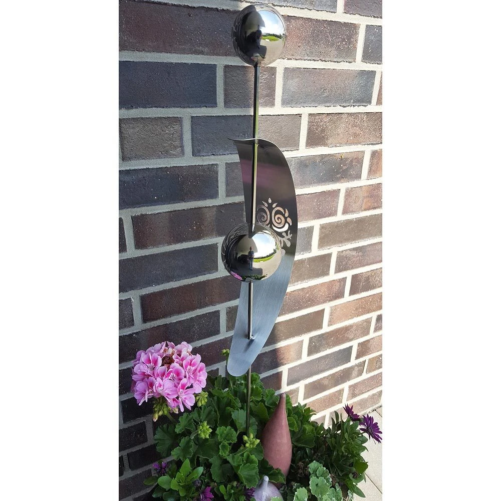 Der Beetstecker Nero aus Edelstahl mit zwei dekorativen Kugeln und einer Ausstanzung mit sympathischem Eulenmotiv ist ein stilvoller Akzent im Blumenbeet oder im Kübel auf Ihrer Terrasse. Dieses Gartenaccessoire ist witterungsbeständig und verschönert Ihren Garten mit einer formschönen Mini-Skulptur auf einem schlanken Stab.