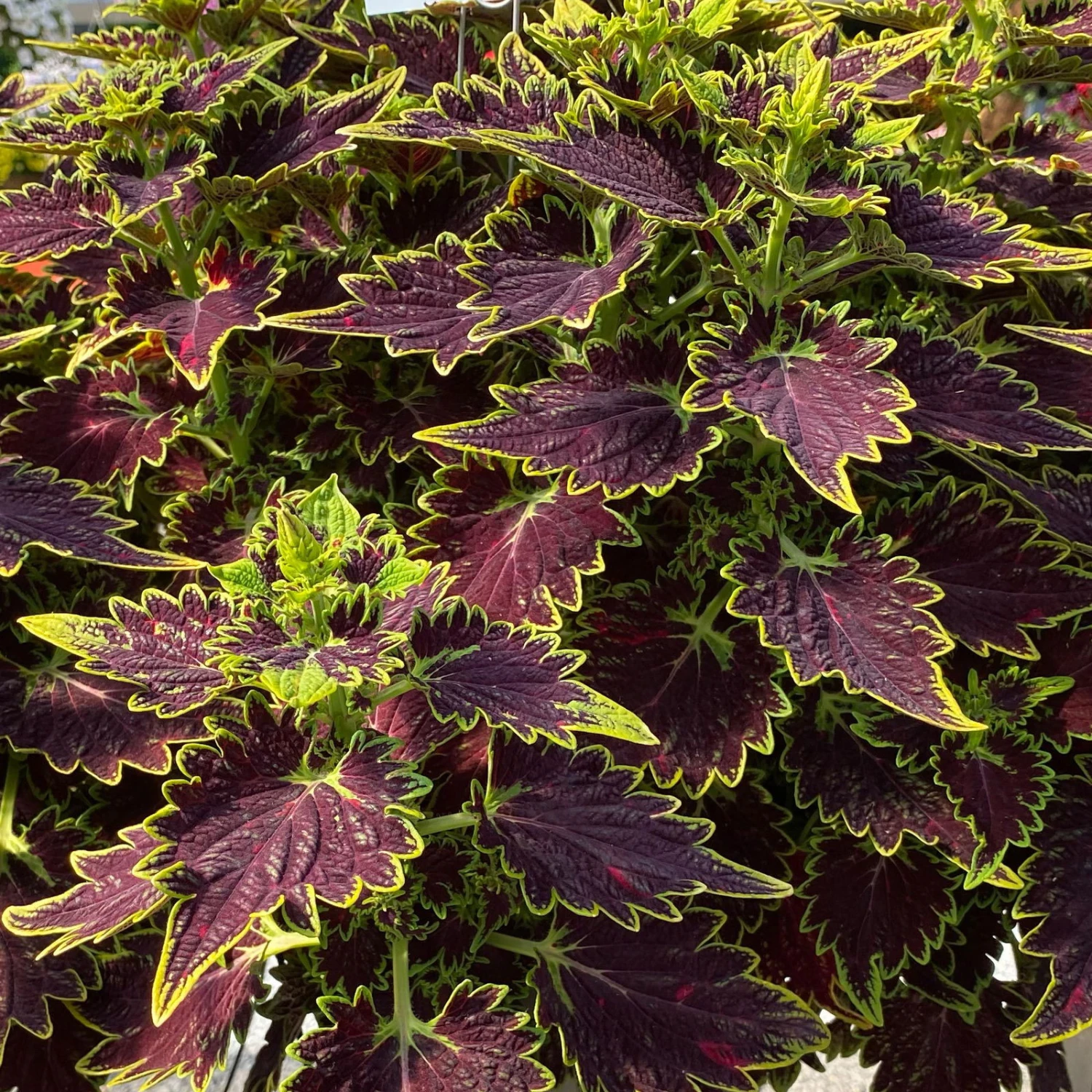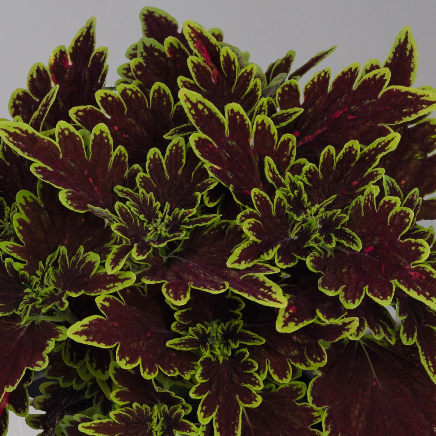 Die keilförmigen, gekerbten Blätter der Buntnessel (Solenostemon scutellarioides “Bourbon Street‘), früher auch Coleus blumei genannt, begeistern durch die effektvolle Zeichnung in Dunkelrot, das mit eine hellgrünen Rand eingerahmt ist. Zur Nomenklatur kann auch der Gattungsname Plectranthus verwendet werden. Die Buntnessel kann eine Wuchshöhezwischen 20 und 60 cm erreichen.
