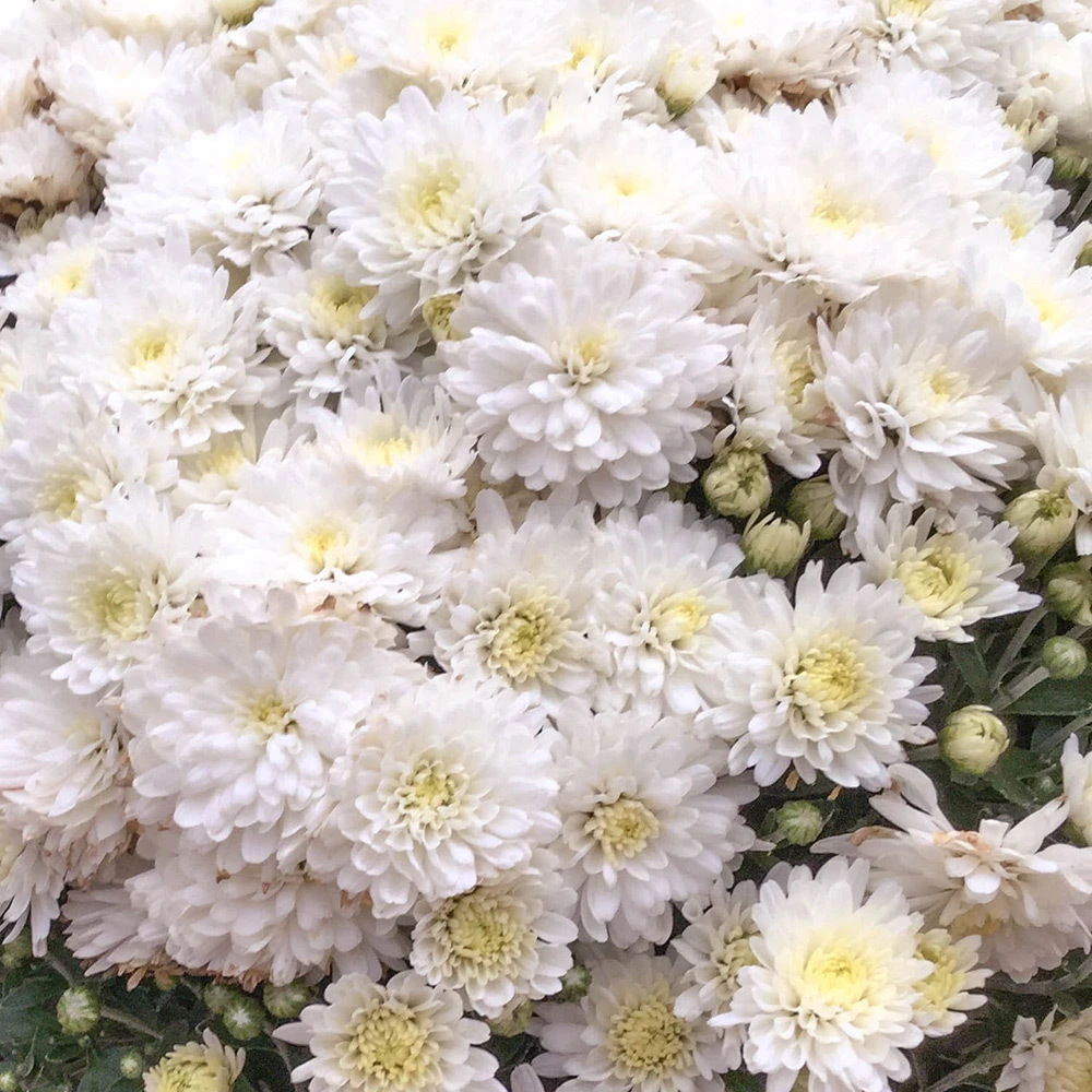Die kleinen runden, gefüllten Korbblüten, blühen von Juli bis Oktober in einem herrlichen Weiß und setzen damit schöne Akzente in Ihrem Zuhause. Dem Namen multiflora (=mehrblütig) machen die Chrysanthemen alle Ehre, da sie mit einer großen Zahl an kleinen Blüte überzeugen.