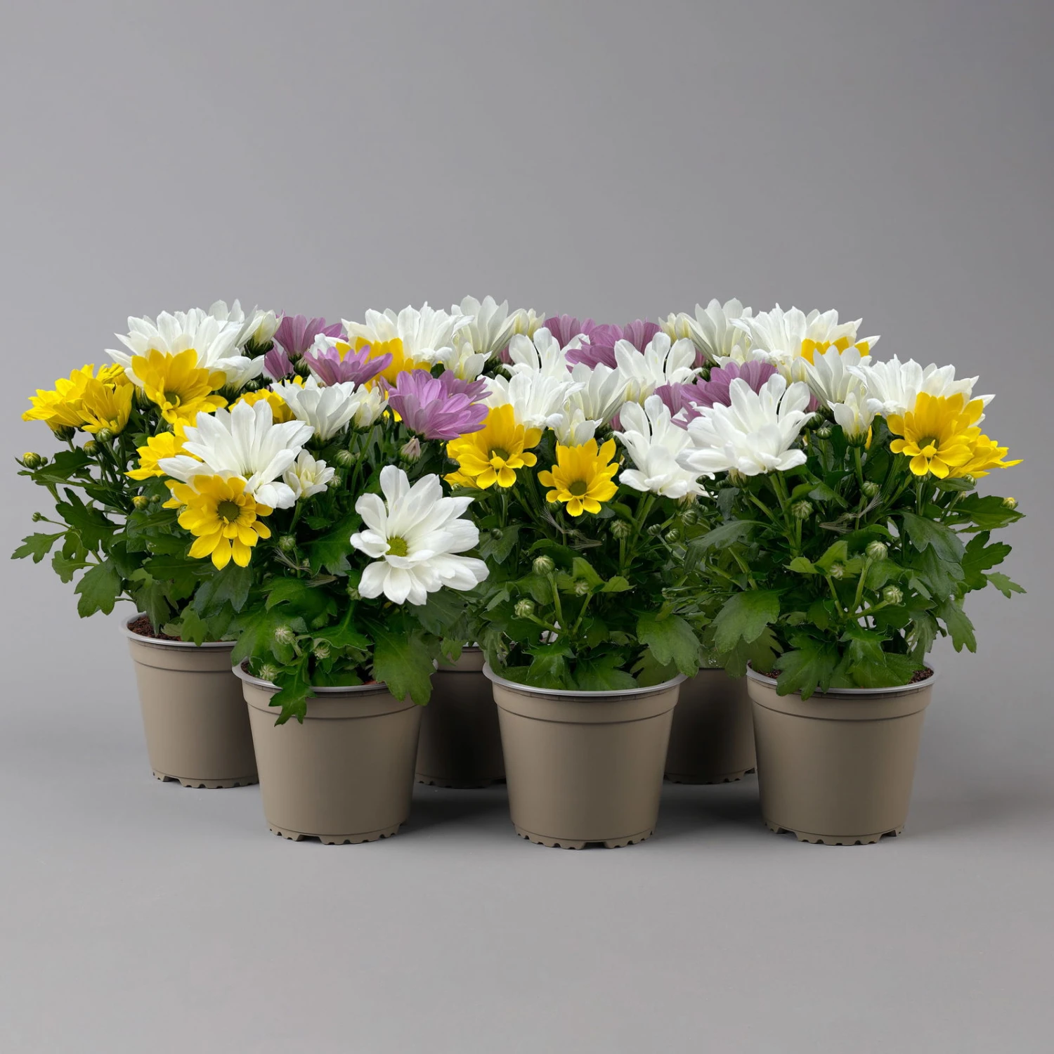Chrysanthemen ‚Trio‘ Weiß-gelb-rosa, Topf-Ø 12 Cm, 6er-Set