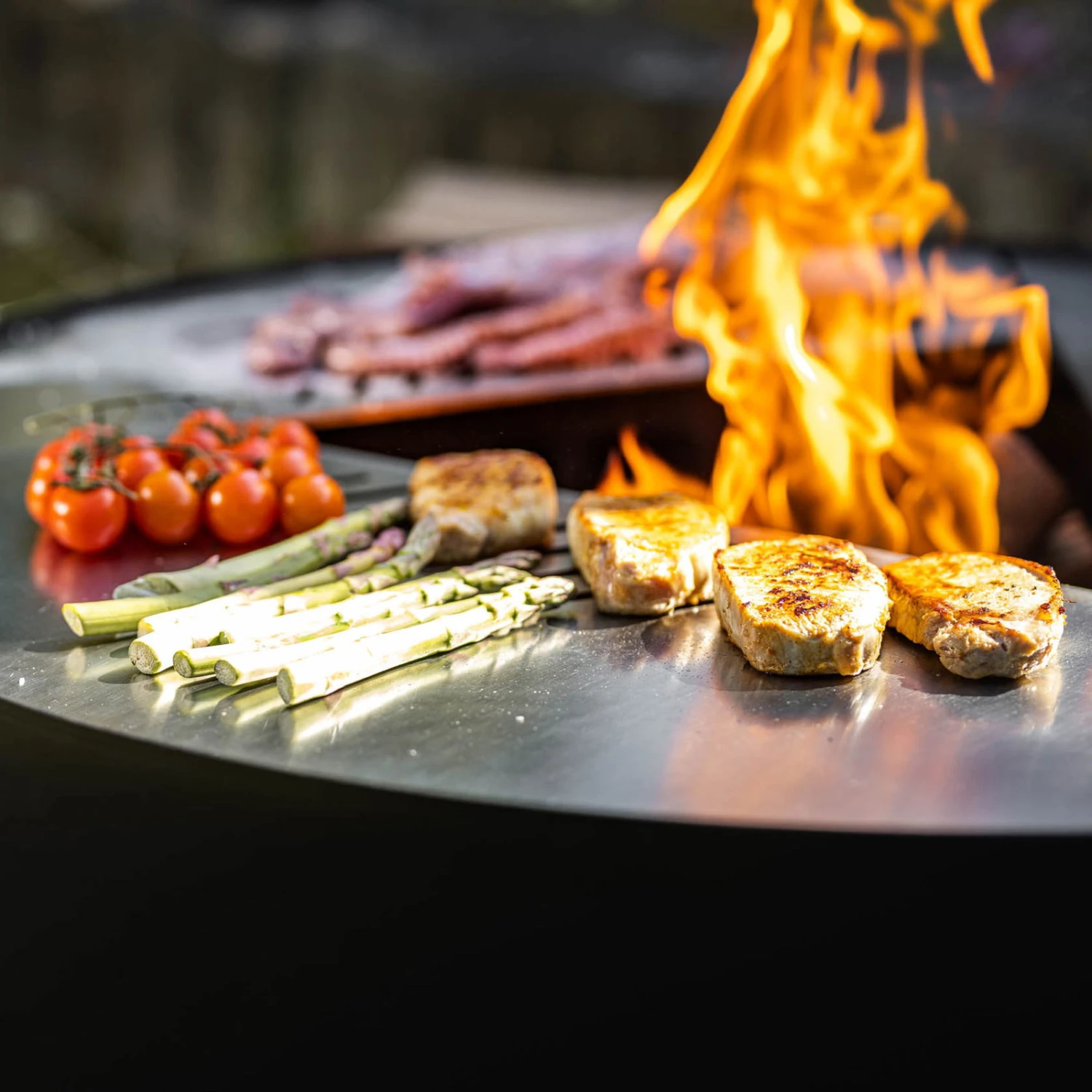 Verbringen Sie gemütliche Abende an wärmendem Lagerfeuer und genießen Sie den Tanz der Feuerzungen. Die schwarze Feuerstelle TRIA von Feu du Jardin setzt dank der eleganten Designlösung dekorative Akzente im Garten oder auf Ihrer Terrasse und lässt sich auf Wunsch als Grill- oder Kochstelle einsetzen.