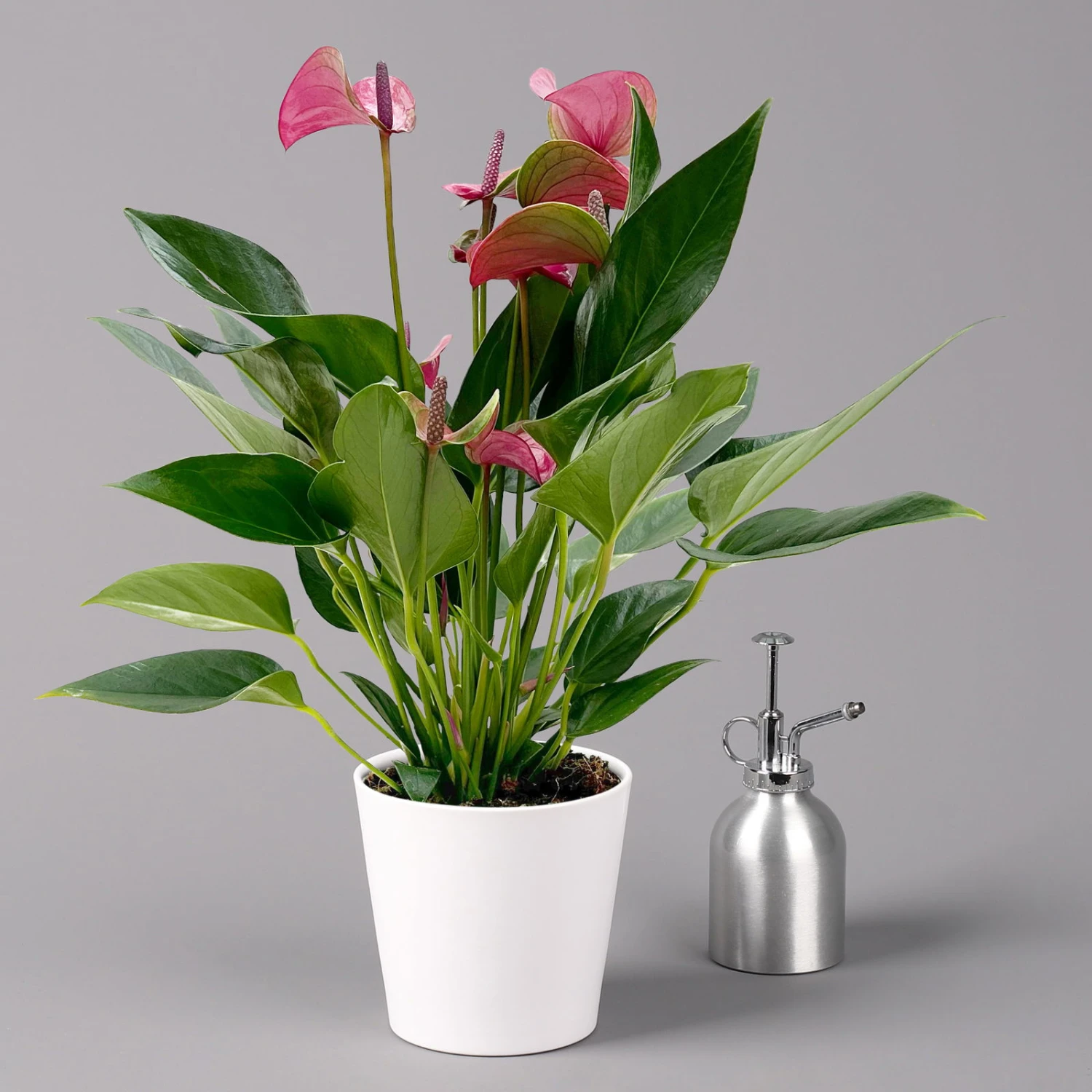 Als Gewächs der Tropen bevorzugt die Flamingoblume ganzjährig sommerliche Temperaturen von 20–25 °C und einen hellen bis halbschattigen Standort ohne direkte Sonneneinstrahlung. Im Winter verträgt die Pflanze auch etwas kühlere Temperaturen zwischen 16 und 18 °C. Der Wurzelballen sollte immer leicht feucht, aber nicht komplett durchnässt sein. Gießen Sie mäßig mit kalkarmem Wasser und lassen Sie die Substratoberfläche vor jeder Wassergabe antrocknen. Besonders eignet sich Regenwasser, da die Anthurie empfindlich auf Kalk reagiert. Achten Sie außerdem auf den verringerten Wasserbedarf während der Wintermonate. Gedüngt werden kann die Flamingoblume das ganze Jahr über; während der warmen Monate von Mai bis August bietet sich eine wöchentliche Düngergabe mit einem Blüh- oder Grünpflanzendünger mit halber Konzentration an. Im Winter sollte die Nährstoffzufuhr auf eine Gabe pro Monat zurückgefahren werden.
