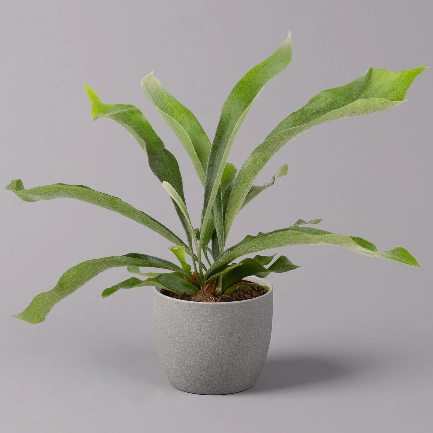 Der Geweihfarn (Platycerium bifurcatum) besticht mit apartem Wuchs und tropischem Flair. Charakteristisch sind die im Alter geweihartig verzweigten Blätter, die graugrün schimmern und mit feinem Filz überzogen sind. Die besondere Grünpflanze wächst bogig überhängend, was die Kultur in einer Blumenampel optimal macht. Bei guter Pflege kann der Geweihfarn bis zu 1 Meter hoch und ausladend werden.