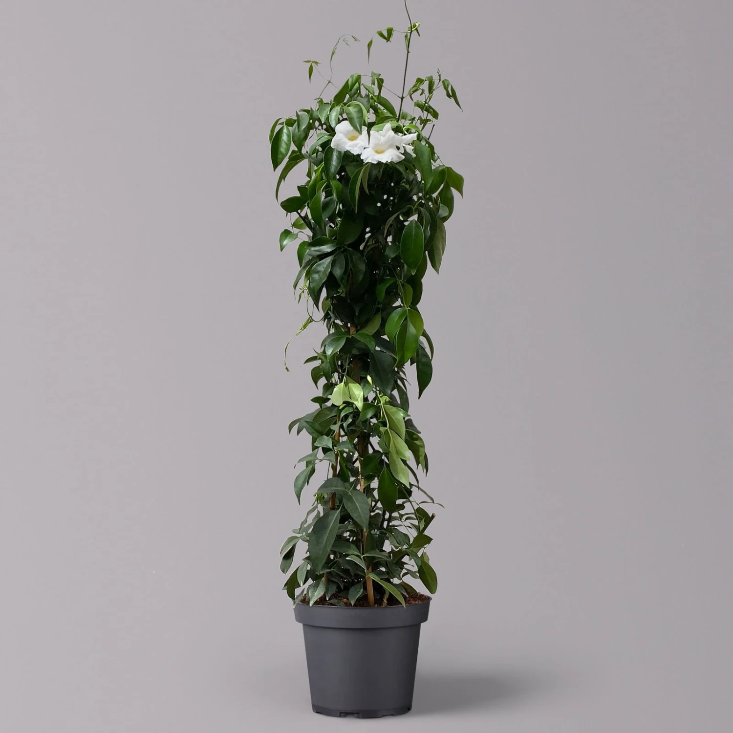 Die großen Blüten sind kelchförmig ausgebildet und begeistern in den Farben Weiß bis Rosa. Von März bis Oktober setzt die Pandorea schöne Akzente in Ihrem Zuhause. Die Farbe richtet sich nach der Verfügbarkeit.